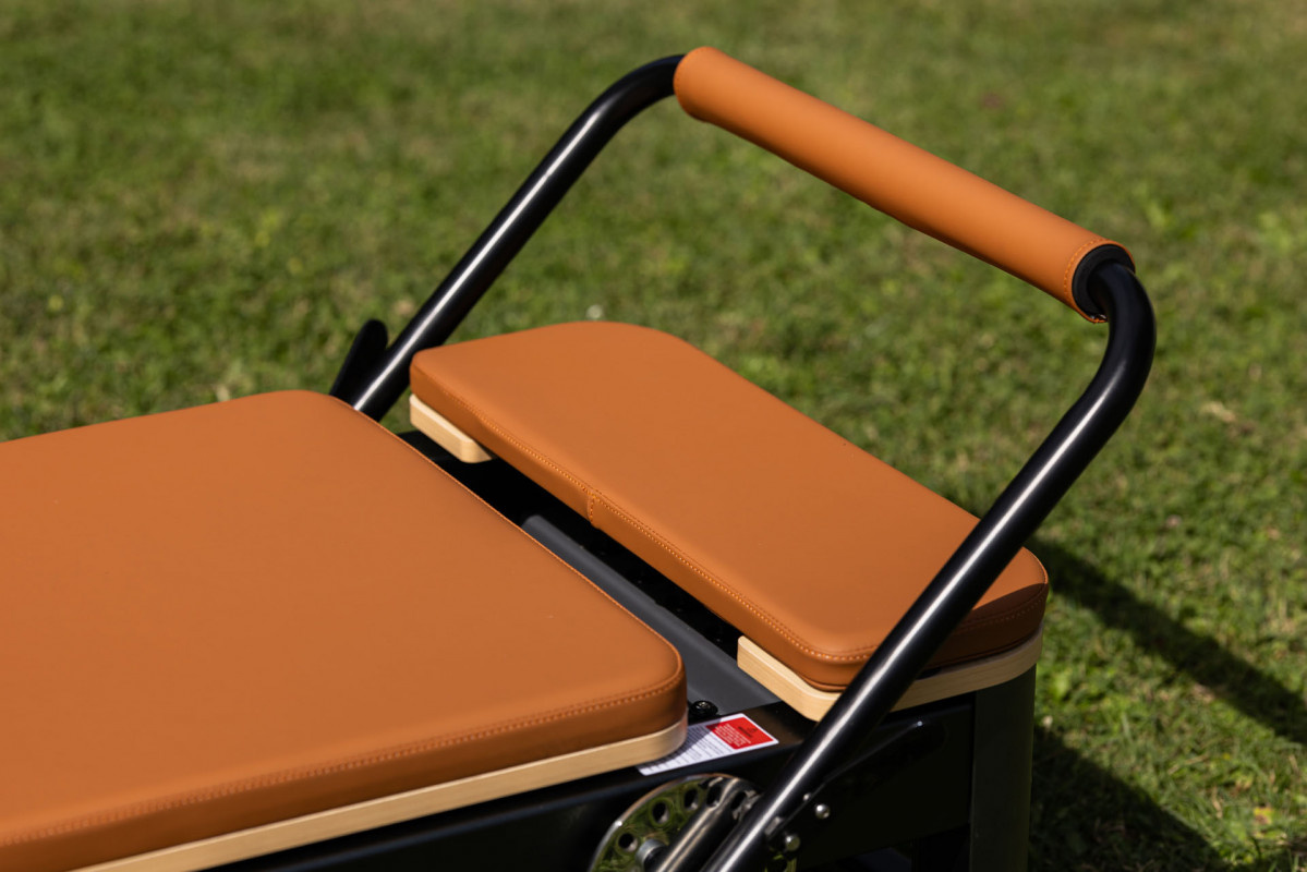 Ennél a Pilates Reformer gépnél a háttámla, a fejtámla és a válltámasz ergonomikus kialakítású, háromrétegű mikroszálas műbőrrel borított, mosható és kopásálló. A nagy sűrűségű szivacsbetét maximális kényelmet biztosít használat közben. A lábtartó rozsdamentes acélból és alumíniumötvözetből készült, teljesen ergonomikus. 6 db edzett acélrugóval és nagy rugalmasságú, ellenálló PU szállítókerekekkel rendelkezik.
