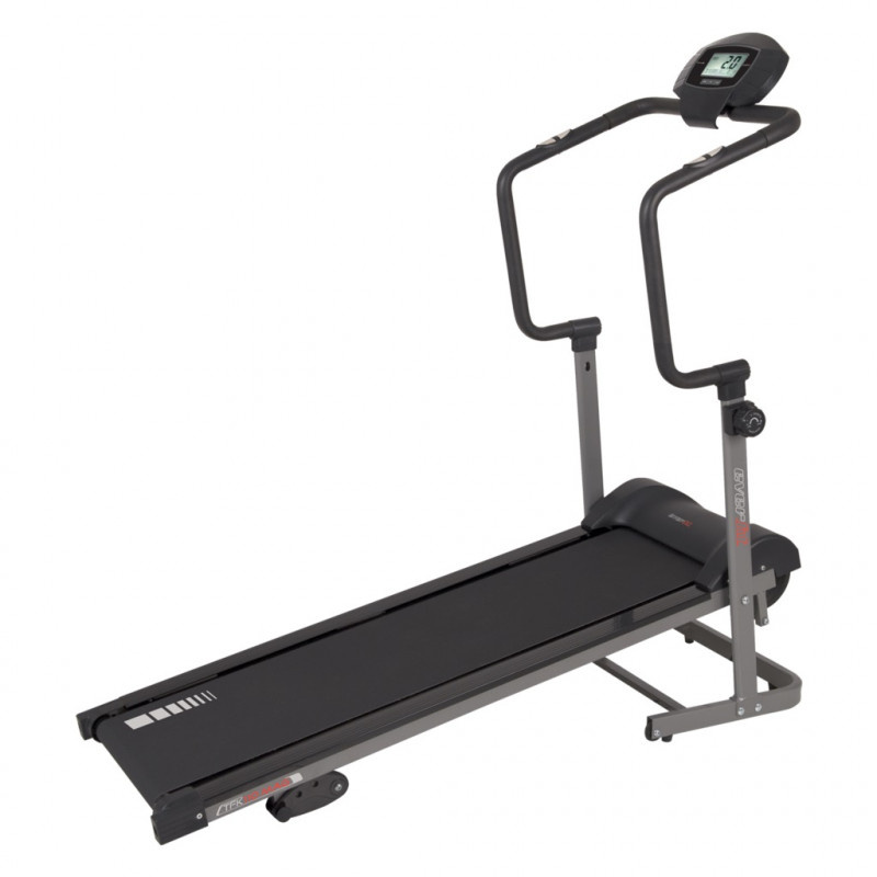 2 év kiemelt garanciaHitelre is megvásárolhatóAz Everfit TFK 110 MAG futópad egy kompakt méretű, helytakarékos mágneses futógép modell. A mágneses futópadot nem kell konnektorba dugni, egyszerűen rá kell lépni a platformra, és máris használható. 6 kg-os lendkerékkel rendelkezik, amely sima és csendes mozgást biztosít. A mágneses ellenállás manuálisan állítható 8 fokozatban. Egyszerűen kiválaszthatja, hogy intenzívebb vagy kevésbé intenzív edzést szeretne-e elvégezni. Masszív szerkezetű, maximum 100 kg-os felhasználói súlyig használható. A konzol LCD kijelzővel van felszerelve, amely lehetővé teszi az edzésadatok (idő, távolság, sebesség, kalória, pulzusszám) nyomon követését. A kapaszkodókon található kézi pulzusmérők hasznosak a pulzusszám mérésére. Miután befejezte az edzést, a futópadot összecsukhatja és könnyen mozgathatja a praktikus kerekeknek köszönhetően .